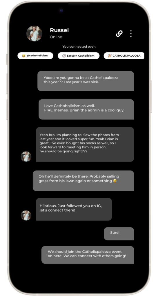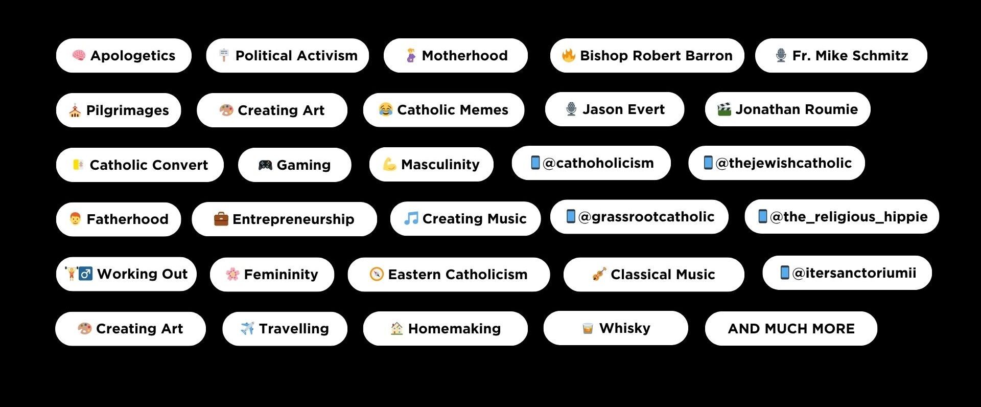Connect with like-minded Catholics based on interests, hobbies, favourite online personalities, and more. Share what upcoming events you’re attending, or where you’ll be travelling to. Network with other professionals in your industry.